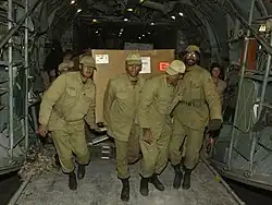 The Iranian Army has deployed forces to help the Red Lion and Sun and Red Crescent societies in rescue and relief missions after domestic natural disasters, including clearing roads, reestablishing communications, supplying goods, airlifting equipment, transporting casualties and personnel and setting up field hospitals and post-hospital care centres.[19][20]