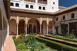 In al-Andalus, the Generalife of Granada, built by the Nasrid dynasty under Muhammad II or Muhammad III on a hill across from Alhambra, is another famous example.[36][37] The palace contains many gardens with fountains, pavilions providing views of the landscape, and shallow-rooted plants. Although it has been modified and replanted over the centuries, two major elements have been preserved from the original design: the Acequia ("canal") Court and the "water stairway" that went to the upper level of the estate.[37]
