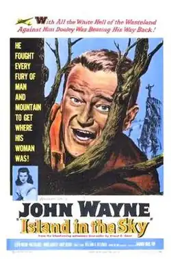 Island in the Sky is a 1953 American aviation adventure drama film written by Ernest K. Gann based on his 1944 novel of the same name, directed by William A. Wellman and starring and coproduced by John Wayne. Because of its realistic depiction of an actual aircraft crash, some consider the film as among the classic aviation films.[2] The film also features Andy Devine, Lloyd Nolan, James Arness and Paul Fix.