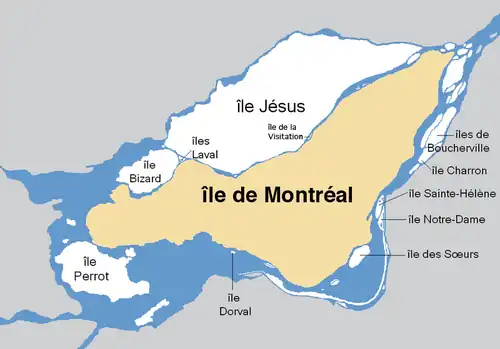 - ^ Although technically an island itself, Dorval Island is one of the 16 municipalities that makes up the island of Montreal.