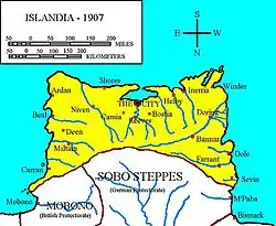 The protagonist and narrator of the novel is an American named John Lang, who graduates from Harvard University in 1905. The setting is Islandia, an imaginary country set in the real world of that time. This remote nation "at the tip of the Karain semi-continent" is near "the unexplored wastes of Antarctica in the Southern Hemisphere".[5] The citizens have imposed "the Hundred Law, limiting access to Islandia to a bare one hundred visitors at a time".[6] Wright may have had in mind both the self-imposed isolation of Siam, starting in 1688, and that of Japan under the Tokugawa shogunate.