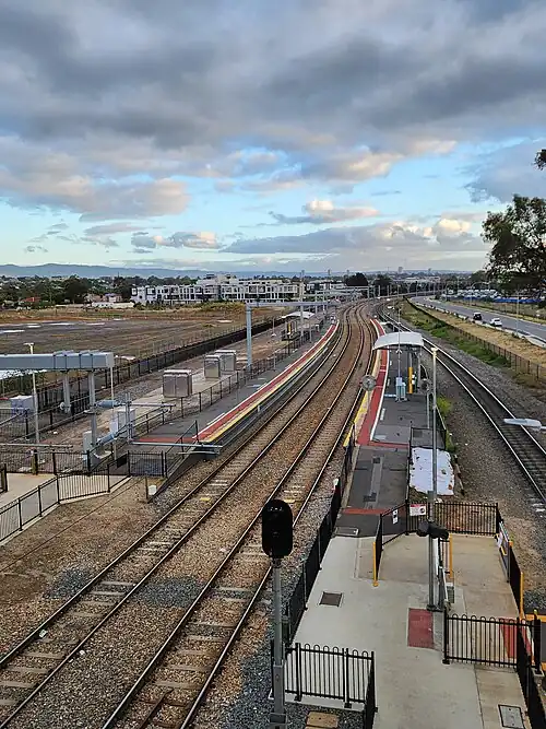 North of the station lie the Islington Railway Workshops.[2] To the west of the station lies the Australian Rail Track Corporation standard gauge line to Crystal Brook. Opposite the station lay a TNT yard that was also used by Holden. The yard had closed by the late 1990s, and remained unused until 2008 when it was completely demolished to make way for a new residential development. In 2014, decontamination of the site commenced.[3]