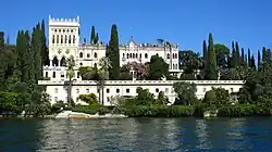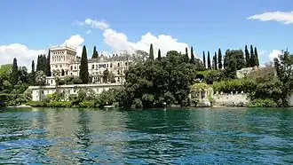 In 1860, the island was expropriated by the newly unified Italian state and turned into a border fortification against the Austrians, who at the time still held the region of Venetia including the eastern shore of Lake Garda.[1] Although some construction work was done, the idea to turn the island into a fortress was abandoned after the Austrians ceded most of their holdings in northern Italy to the Kingdom of Italy after the Third Italian War of Independence in 1866. After that, only the northern end of Lake Garda around Riva del Garda remained Austrian. In 1870, the island was sold at auction and purchased by Baron Scotti. He in turn sold it to Duke Gaetano de Ferrari (1818–1893) from Genoa.[6] De Ferrari and his wife, the Russian aristocrat Maria Sergeyevna Annenkova (1837–1924),[7] moved to the island.