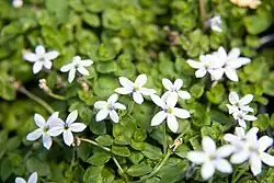 In 1810, in his book Prodromus Florae Novae Hollandiae et Insulae Van Diemen, Robert Brown described Lobelia hypocrateriformis and placed it in section Isotoma.[4][5] Then in 1826, based on Brown's description, John Lindley raised the genus Isotoma in The Botanical Register.[6][7] The name Isotoma is derived from ancient Greek words meaning "equal" and "a piece cut off" or "a slice". The name was originally applied to a subdivision of Lobelia, because unlike true lobelias, the petal lobes are almost equal in size.[8]