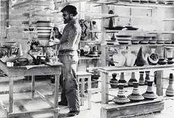 From the very beginning of the ceramics industry in Israel, ceramic objects were produced in casting molds. However, the development of the Zionist industry gave impetus to speedy industrialization.[24] The main area in which the ceramics industry developed was Haifa, where in 1938 "Naaman" where cast porcelain objects were produced, was founded.[25] In the exhibition "Applied Art and the Prescription for Industry in the Land of Israel," held in the Bezalel Museum in Jerusalem in 1947, glazed pots were displayed by Hanna Harag Zunz as an example of cooperation among various elements of the industry.[26] In 1955 in the Haifa Museum of Art an exhibition entitled "The Ceramic Society" was mounted, in which objects and the processes of their production in the local ceramics industry were displayed.[23]