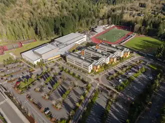 Growth of enrollment at IHS has coincided with the growth of the Issaquah community. The Issaquah School District completed the construction of the Pacific Cascade Freshman Campus in 2005, making it the new home to the freshman class of IHS and nearby Skyline High School. IHS enrolled only three school grades (10–12) for five academic years (2005–10) while an extensive remodeling of the school took place.[2] The cost of the remodel totaled $61,500,000. IHS is now the district's largest school. The three stories accommodate 1,850 students. There are three classroom wings, science labs, a main and auxiliary gym, commons, and administrative spaces.[3]