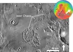 Ister Chaos is a broken up area in the Lunae Palus quadrangle of Mars. It is located at 13.0° N and 56.4° W. It is 103.4 km across and was named after a classical albedo feature at 10N, 56W.[1]