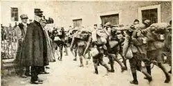 The Dalmatian hinterland was not occupied by any army for the entire month of November, even though it was de facto administered by the Yugoslav national committees dependent on Zagreb. The Italian Armed Forces, after having consolidated their control over the ports and islands, and with the arrival of reinforcements from the homeland, began to penetrate the hinterland of the Dalmatia, occupying Vodice (on 3 December 1918), and Scardona/Skradin (on 5 December 1918).[17] The case of the occupation of Tenin/Knin was much more complex, given the scarce presence of Dalmatian Italians, while the Serbian presence was conspicuous.[17] Enrico Millo ordered the Serbian army, which had arrived in the meantime, to withdraw, given that they were territories granted to the Kingdom of Italy by the Armistice of Villa Giusti.[17] After repeated armed clashes between the two armies, Italian troops occupied Knin on 1 January 1919.[17]