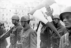 Women volunteers served in uniform as noncombatants in paramilitary units and police formations (Servizio Ausiliario Femminile). The commander was the brigadier general Piera Gatteschi Fondelli.[51][52]
