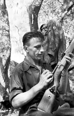 The RSI had no constitution or organized economy, and its financing was dependent entirely on funding from Berlin.[15] German forces themselves had little respect for Mussolini's failed fascism, and considered the regime merely as a tool for maintaining order, such as repressing the Italian partisans.[16] This work was also carried out by the infamous Pietro Koch and the Banda Koch on Germany's behalf.[17]