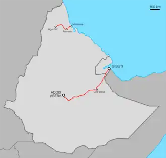 The construction of railways in the African Italian colonies (Eritrea, Libya and Somalia) did not have, for various reasons, a great development compared to that promoted by other European countries on the same continent.[1]