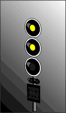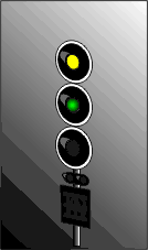There are two more Category 1 signal aspects, usually shown on "home signals", which instruct the driver to proceed cautiously towards a buffer stop or an occupied or a very short track.