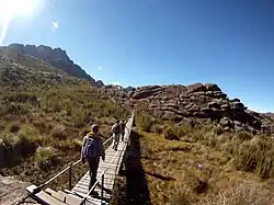 Itatiaia's natural beauty and pleasant weather attract thousands of visitors each year, with many rock climbing and hiking in the surrounding mountains.[6][10]