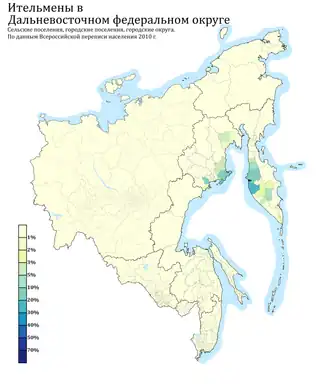 The Itelmens (Itelmen: Итәнмән, romanized: Itənmən; Russian: Ительмены, romanized: Itel'meny) are an Indigenous ethnic group of the Kamchatka Peninsula in Russia. The Itelmen language is distantly related to Chukchi and Koryak, forming the Chukotko-Kamchatkan language family, but it is now virtually extinct, the vast majority of ethnic Itelmens being native speakers of Russian.