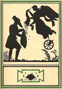 Illustrated books of Krylov's fables have continued in popularity and at the start of the 20th century the styles of other new art movements were applied to the fables. In 1911 Heorhiy Narbut provided attractive Art Nouveau silhouettes for 3 Fables of Krylov, which included "The beggar and fortune" (see below) and "Death and the peasant". A decade later, when the artistic avant-garde was giving its support to the Russian Revolution, elements of various schools were incorporated by Aleksandr Deyneka into a 1922 edition of the fables. In "The cook and the cat" it is Expressionism,[31] while the pronounced diagonal of Constructivism is introduced into "Death and the peasant".[32]