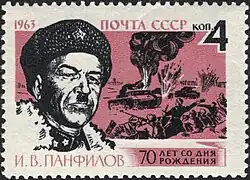 ![]() Major General Ivan Panfilov on a Soviet stamp, 1963 | |