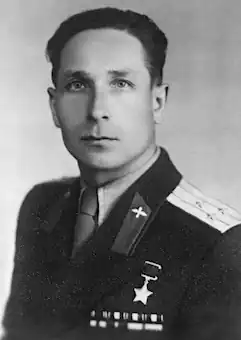 1. ^ Bykov, Mikhail (2014). Все асы Сталина. 1936–1953 [Aces of Stalin. 1936–1953]. Moscow: Yauza. pp. 762–763. ISBN 978-5-9955-0712-3. OCLC 879321002.
