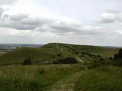 Ivinghoe Hills is a 210.4-hectare (520-acre) Site of Special Scientific Interest in Ivinghoe in Buckinghamshire, and part of the Chilterns Area of Outstanding Natural Beauty. It is listed in A Nature Conservation Review. The Ridgeway long-distance footpath ends and the Icknield Way Path starts in the site on Ivinghoe Beacon. An Iron Age fort on Ivinghoe Beacon and a tumulus on Gallows Hill are Scheduled Monuments. The site is part of the National Trust's Ashridge Estate, apart from a small area which belongs to Buckinghamshire County Council.[1][2][3]