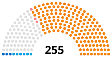 The 255 members of the National Assembly were elected from 169 single-member constituencies and 36 multi-member constituencies with between two and six seats.[2][3] In single-member constituencies voters cast a vote for one candidate who is elected by first-past-the-post voting; whereas in multi-member constituencies candidates were elected by plurality-at-large voting, where voters cast a single vote for a closed list, with the list receiving the most votes winning all seats in the constituency.[4]