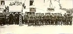 In February 1918, Ivyanyets was occupied during the First World War by German troops as part of the invasion of Russia. On 25 March, 1918, Ivyanyets was proclaimed part of the short-lived independent Belarusian People's Republic, but on 1 January, 1919, in accordance with the decision of the Congress of the Communist Party (Bolsheviks) of Belarus, became a part of the Byelorussian SSR, but in August 1919, Ivyanyets was occupied by the Polish Army. According to the Treaty of Riga (1921) the town was included in the inter-war Second Polish Republic, initially within Stołpce County, and from 1923 in Wołożyn (Valozhyn) County in the Nowogródek Voivodeship, and was now 16 kilometers (9.9 mi) from the Belarusian SSR border. In the 1921 census, 64.4% people declared Polish nationality, 33.9% declared Jewish nationality, and 0.9% declared Belarusian nationality.[4] In 1934, the electrification of Ivyanyets began when individuals from the town founded a power plant on the Volma River, on the land of a former Sologub family property. In 1936, Ivyanyets built a new school, and by 1938 the town had 574 buildings (including 10 stone) and a military airport.