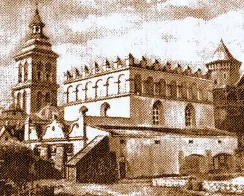 The Golden Rose Synagogue (Ukrainian: Золота Роза, romanized: Zolota Roza; Polish: Złota Róża; Yiddish: די גאָלדען רויז, romanized: Di Golden Royz), known also as the Nachmanowicz Synagogue, or the Turei Zahav Synagogue (Hebrew: בית הכנסת טורי זהב) was an Orthodox Jewish synagogue, located in Lviv, in what is now the Lviv Oblast in western Ukraine. The Golden Rose Synagogue, established in 1582 in the Polish–Lithuanian Commonwealth, was the oldest synagogue in what is now Ukraine. From September 1603 until 1801, the Golden Rose served as the main communal synagogue while the Great City Synagogue expanded its facilities.[1] Both the Golden Rose and Great City synagogues were destroyed by Nazis during World War II.