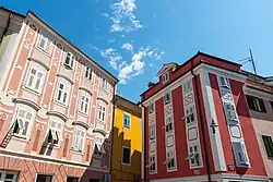 An ancient Roman port and settlement known as Haliaetum stood to the southwest of the present town, next to the village of Jagodje, as early as the 2nd century BC. The town of Izola was established on a small island by refugees from Aquileia in the 7th century. The coastal areas of Istria came under Venetian influence in the 9th century. The settlement was first mentioned in writing as Insula in a Venetian document entitled Liber albus in 932 AD.[3] It became definitely the territory of the Republic of Venice in 1267, and the centuries of Venetian rule left a strong and enduring mark on the region. The Venetian part of the peninsula passed to the Holy Roman Empire of the German Nation in 1797 with the Treaty of Campo Formio, until the period of Napoleonic rule from 1805 to 1813 when Istria became part of the Illyrian provinces of the Napoleonic Empire. After this short period, during which Izola's walls were torn down and used to fill in the channel that separated the island from the mainland, the newly established Austrian Empire ruled Istria until November 1918.[4] The treaty of Saint Germain assigned Izola and the rest of the Istria region to Italy. The Italian-speaking population was the majority according to the Austro-Hungarian census of 1900: of 5,363 inhabitants, 5,326 spoke Italian, 20 Slovene, and 17 German. Istria became part of the Kingdom of Italy, until Italian capitulation in September 1943, whereupon control passed to Germany. Izola was liberated by a naval unit from Koper at the end of April 1945. After the end of World War II, Izola was part of Zone B of the provisionally independent Free Territory of Trieste; after the de facto dissolution of the Free Territory in 1954 it was incorporated into Slovenia, then a part of Yugoslavia.[5] The newly defined Italo-Yugoslav border saw the migration of many people from one side to the other. In Izola's case, many Italian speakers emigrated, and in their place Slovenian-speaking people from neighbouring villages settled in the town.[5]
