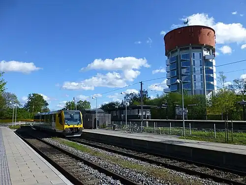 Jægersborg station is a railway station serving the suburb of Jægersborg in Gentofte Municipality north of Copenhagen, Denmark.[1] The station is located on the Hillerød radial of the S-train network in Copenhagen, Denmark, served by the E and A-train.[4] It is also the southern terminus of the Nærumbanen local railway.