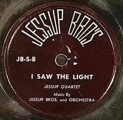 The Jessup Brothers were a gospel group with five to seven members, consisting of various Jessup Brothers plus Pee Wee Maddux, who performed religious music in the western-swing style.[5][9][16] In 1951 they campaigned for Sam Lumpkin.[26] They were represented by agent Dallas Turner in association with Harold Schwartz.[27] In addition to their singing, they were known for their instrumental prowess, and in 1957 member Darrel Jessup custom ordered a guitar billed as "one of the most radical guitars of all time", which was later owned by Charles.[9] Members included: