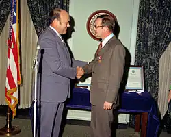 It was Buzhardt who inadvertently tipped off Senate Watergate Committee investigators about the existence of the White House tapes. Nixon and Haig, who were aware of the sound-activated taping system in the Oval Office, had given to Buzhardt, who was not aware of it, detailed accounts of Nixon's meetings with Dean, including verbatim quotes. Buzhardt, in turn, conveyed the material to Fred Thompson, then minority counsel to the Watergate Committee. As recounted by Scott Armstrong, the majority staff discovered the transcript and questioned former White House aide Alexander Butterfield about its provenance. The questions led directly to Butterfield's July 16, 1973 disclosure of the taping system to the committee and then the public. Thompson, informed of the disclosure, in turn, warned Buzhardt, who then learned of it, for the first time, in that indirect way.[12] Buzhardt would spend hundreds of hours listening to the tapes to determine their contents before the tapes were conveyed to investigators.[13]