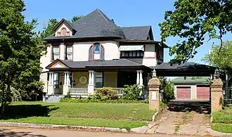 Built in 1895, it is a two-story, wood-framed structure, and is notable as a fine local example of the Free Classical type of Queen Anne styling. It is also locally significant as being the longtime home of John Keener Wadley, a lumber, railroad, and oil baron listed as one of the wealthiest men in the United States. The house features a wraparound porch with a pedimented gable, supported by grouped columns. The exterior is finished in clapboarding on the lower level and decorative cut shingles on the upper level. A low onion-domed turret rises from the southern corner.[2]