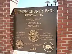- ^ Mayor Healy & Nanette Grundy to Cut Ribbon for the Grand Re-Opening & Re-Dedication of the J. Owen Grundy Park JC press release: park rededication 2008