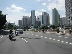 Crossing under the Guadalupe Bridge of Epifanio de los Santos Avenue (EDSA), the road runs through Guadalupe Viejo and Rockwell Center. West of Estrella Street, it enters the Makati Población area, passing through the Makati Poblacion Park before coming to an intersection with Makati Avenue. The road gradually pulls away from the river, continuing on a straight path to Chino Roces Avenue and A.P. Reyes Avenue in barangays Olympia and Tejeros. The section from Makati Avenue then carries one-way westbound traffic, especially during daytime and rush hours up to Pasong Tirad. Located in this section are Makati City Hall and Circuit Makati, formerly the site of Santa Ana Race Track.[2][3][4] The avenue then curves northwest past Pasong Tirad before coming to its western terminus at Zobel Roxas and Delpan Streets at the city's border with Manila, continuing as Tejeron Street.