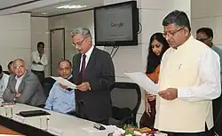 J. Satyanarayana was appointed as the Union Communications and Information Technology Secretary by the Appointments Committee of the Cabinet (ACC),[5] he assumed office on 14 March 2012,[2][3] demitted it and simultaneously superannuated from service on 31 April 2014.[2]