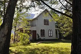 J. W. Moore House is a historic home located at Rhinebeck, Dutchess County, New York. It was built about 1850 and is a 1+1⁄2-story, cruciform-plan building with board-and-batten siding and a cross-gable roof, built into a hillside and features a number of eclectic-Picturesque design elements. Also on the property is a contributing barn, carriage house, and well with well house.[2]