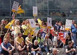 The J30 Protests were a one-day strike held in the United Kingdom on 30 June 2011. The strike was held by public sector workers in an effort to protest the government's planned unconventional changes to pension plans and retirement policies, including raising the retirement age from 60 to 66 and the replacing of final salary pension schemes with a career-average system.[1][2][3] The Driving Standards Agency had recently announced that it was to launch a localised trial to determine whether delivering examiners from non-established test centres could help with growing pupil demand, starting in Warrington, Wiltshire, Ayrshire, Wales and Dumbarton.[4]