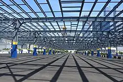 Pier 97 was until 1975 the home of the Swedish American Line passenger ship terminal.[100] The terminal was demolished some time after 1984 and the pier became to a live event venue, JBL.[101] In 2019, a public park was announced on Pier 97 as part of a $38 million renovation;[102][103] the park was designed by !melk Architects.[104][105] Parts of the park first opened in early 2024,[102] and the pier was completed in October 2024.[106][107]