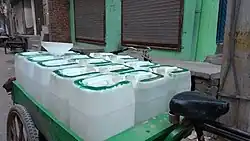 The Urban Services Programme[10] for resettlement colonies mandates that Pay and Use toilets be made available at the ratio of 1 seat per 10 families. However, the number of public toilets in the entire locality ranges from about 15–20. The number of public toilets in each block typically depends upon the size of the block. B1 has 5 toilets whereas A1 has 3 and B2 has 2. The toilets also only operate on specific times, from 6-11 a.m. and 4-8 p.m. Safe and free drinking water is difficult to find in this colony, as the supply water is non-potable and hard. This has led to a growing water-distilling business in the region which provide 20 liters for Rs. 10 on average.
