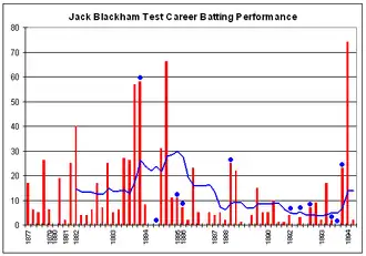 Jack Blackham's Test career batting graph.