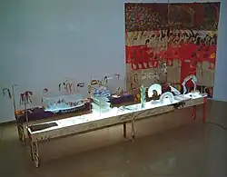 Between 2004 and 2007, Butler worked on the project Art and Cold Cash.[18] The collective of artists who worked on the project included southern-Canadian visual artists Sheila Butler and Patrick Mahon, as well as northern-Canadian writer Ruby Arngna'naaq and artist William Noah.[19]Art and Cold Cash was showcased in art galleries across Canada, arctic settlements, the University of Edinburgh, and the Toronto Pearson International Airport.[4]
