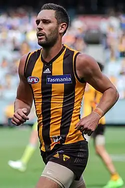 In his first season at Hawthorn he played 19 games, including the 2012 Grand Final, and followed up in 2013 with 23 games.[10]