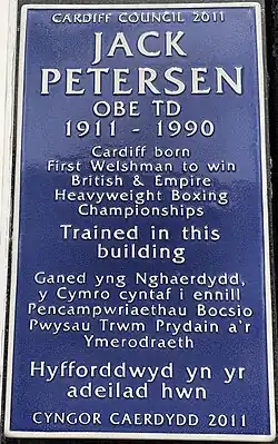- ^ "Jack Petersen – Boxing Clever". Roath Local History Society. Retrieved 8 December 2022.