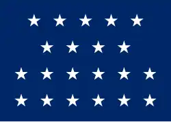 | Design | 50 white five-pointed stars defacing a blue field in 9 rows, alternating between 6 and 5 stars. |