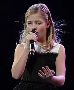 Jacqueline Marie Evancho (/iːˈvæŋkoʊ/ ee-VANG-koh;[1] born April 9, 2000) is an American singer who gained wide recognition at an early age, singing primarily classical crossover covers. Since 2009, she has issued nine albums, a platinum-selling EP and two further EPs; three of her discs debuted in the top 10 on the Billboard 200.[2][3] She has also presented three solo PBS concert specials.