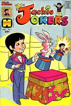 He debuted in 1973, in his eponymous title, before being cancelled and replaced by the title Richie Rich and Jackie Jokers later that year. He and his similar-looking father, Jerry Jokers, are both stand-up comedians, but Jackie often takes his indulgences of other performing and creative arts to comical extremes. Also featured is Ben Booker, Jackie's talent agent. In every issue of Richie Rich and Jackie Jokers, a featured story would always show Jackie doing a parody of current films, TV shows, or commercials.