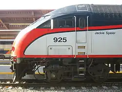 State law prevented Speier from running for reelection to the Assembly in 1996, but in 1998 she was elected to the California State Senate. In 2002, she was elected to a second term with 78.2% of the vote.[18] As a state senator, Speier was instrumental in securing $127 million to start the "Baby Bullet" express service for Caltrain, for which the commuter rail agency named a new locomotive (no. 925) after her.[19] Speier also focused on representing consumer rights. She was termed out of the California State Senate in 2006. During her last term, she served as assistant president pro tempore of the State Senate.