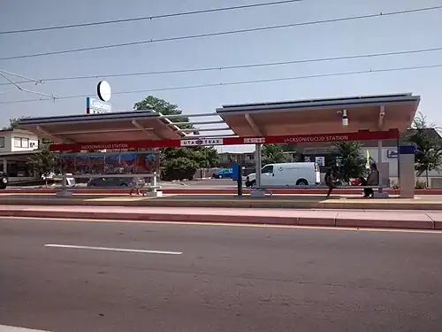 Jackson/Euclid station is a light rail station in Salt Lake City, Utah serviced by the Green Line of the Utah Transit Authority's (UTA) TRAX system. The Green Line provides service from the Salt Lake City International Airport to West Valley City (via Downtown Salt Lake City and connects with the rest of the TRAX system, as well as UTA's FrontRunner commuter rail and S Line streetcar.[1]