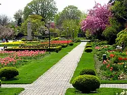 Jackson Park is a park south of Downtown Windsor, Ontario, Canada. Acquired in 1929, with the persistence of then mayor Cecil E. Jackson, Windsor City Council voted in favour of purchasing the land from the Jockey Club. At the same meeting where the land was purchased, city council decided to name the new park after their mayor. Jackson Park has long been considered one of Windsor's most beautiful parks and attractions. It is most known for its yearly display annual garden beds and a large array of perennial plants. In the winter months, Jackson hosts Bright Lights Windsor, a Christmas light display put on by the City.