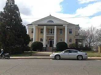 Jacob S. Mauney Memorial Library and Teacher's Home, also known as the Mauney Memorial Library and Dr. Jacob George Van Buren Hord House, is a historic home and library located at Kings Mountain, Cleveland County, North Carolina. It was built in 1923 as a private dwelling and donated to the city of Kings Mountain in 1947. From 1947 to about 1962–1963, the building also functioned as a teacherage for the Kings Mountain school system. It is a two-story, five-bay, yellow-brick Southern Colonial Revival-style house. The front facade features a two-story, pedimented tetrastyle portico with stucco-finished masonry columns. It has a one-story rear block added in 1987–1988 and the Harris Children's Wing, a two-level addition of 1999–2000.[2]