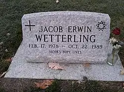 Jacob Erwin Wetterling (February 17, 1978 – October 22, 1989) was an American boy from St. Joseph, Minnesota, who was kidnapped from his hometown and murdered on October 22, 1989, at the age of 11. The identity of his abductor remained a mystery for nearly 27 years.