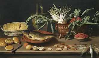 Jacob Foppens van Es, Jacob Fopsen van Es or Jacob van Es[1] (c. 1596 Antwerp – 1666 Antwerp) was a Flemish Baroque painter known for his still lifes mainly of food and occasionally flower paintings. He collaborated with other artists on garland paintings. Together with Osias Beert and Clara Peeters, he was one of the leading representatives of the first generation in Flemish still-life painting.[2]